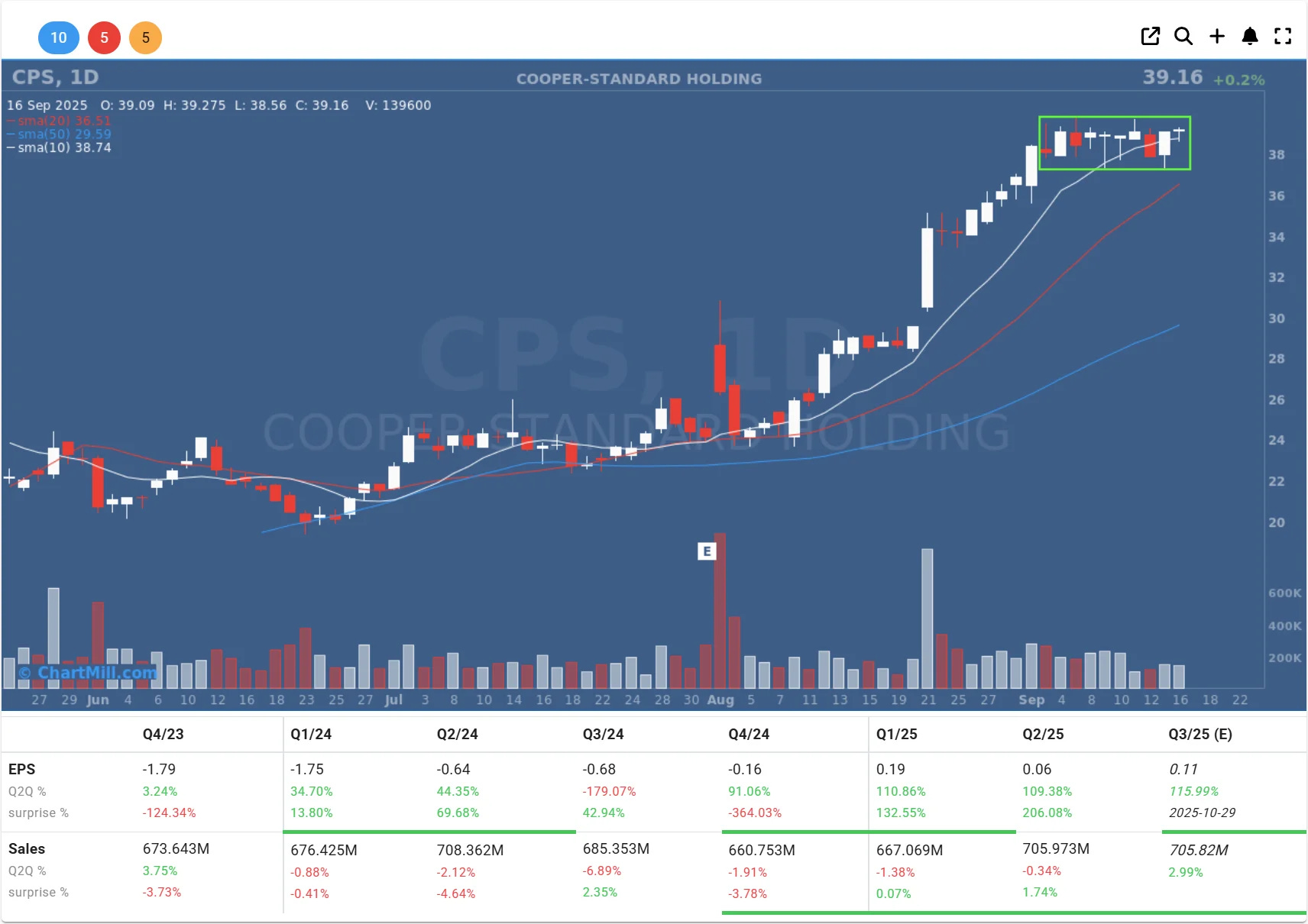 CPS: Relative strength and tight consolidation, a potential leader.