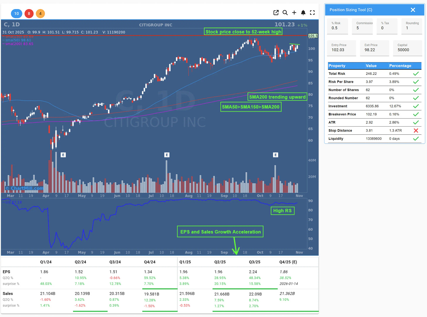 Mark Minervini Cheat Entry Setup on Citigroup (C): A Textbook Swing Trade Opportunity