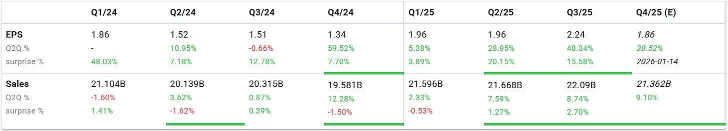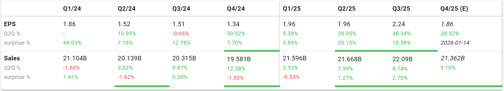 Both EPS and sales growth are accelerating since Q2/25, confirming strong fundamental momentum. This is exactly what Minervini looks for before a stock begins a powerful uptrend.