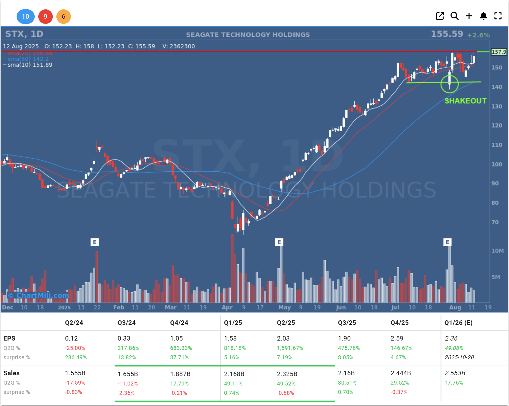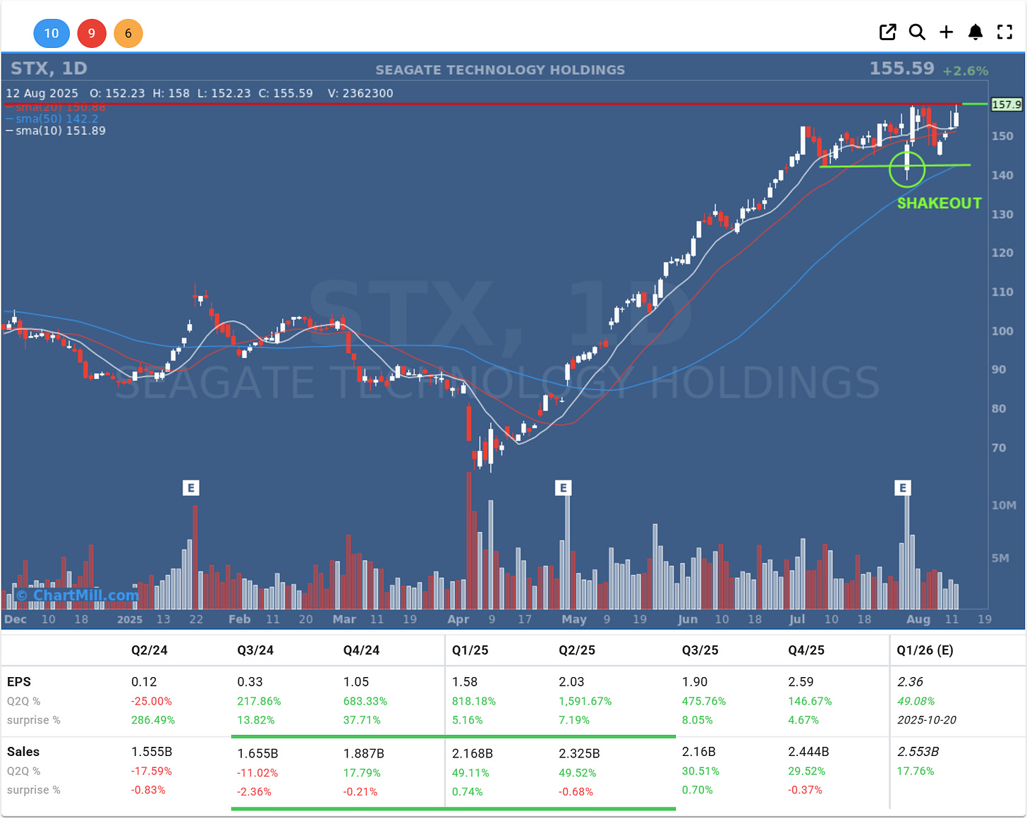 After a sharp rally from the April lows, STX consolidated in a tight range just below resistance. On July 30, the stock gapped down sharply at the open following its Q4 2025 earnings release, triggering a brief shakeout under short-term support.